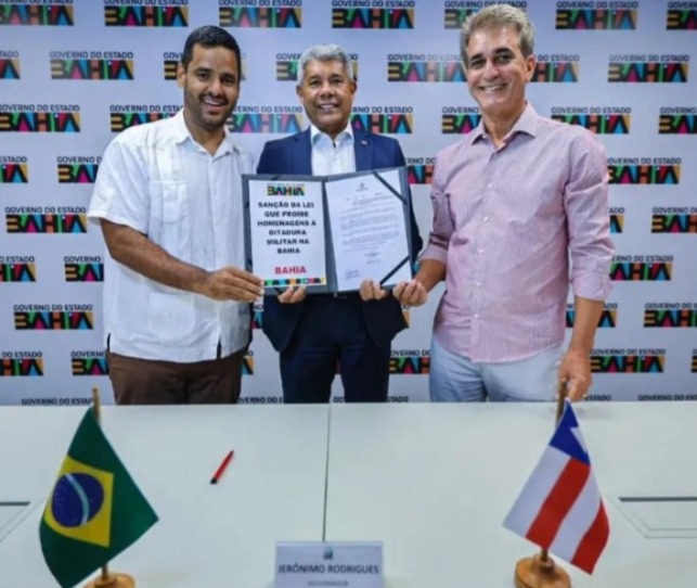 O governador Jerônimo Rodrigues (PT) sancionou, nesta quinta-feira (8) a lei que proíbe a homenagem de nomes de pessoas ligadas à ditadura militar a equipamentos públicos no estado da Bahia. A medida ainda será publicada no Diário Oficial do Estado desta sexta, 9.