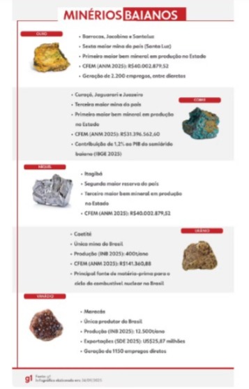 💎 A Bahia também é responsável pela única produção de urânio do Brasil. As duas principais aplicações do mineral enriquecido são como combustível para usinas nucleares e em reatores nucleares que operam navios e submarinos.