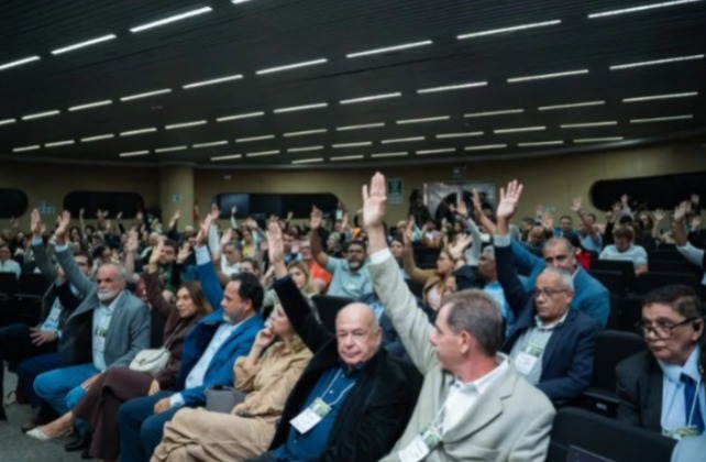 Momento em que a carta-manifesto foi aprovada por aclamação durante o Encontro Nacional dos Municípios Mineradores – Foto: Filipe Augusto