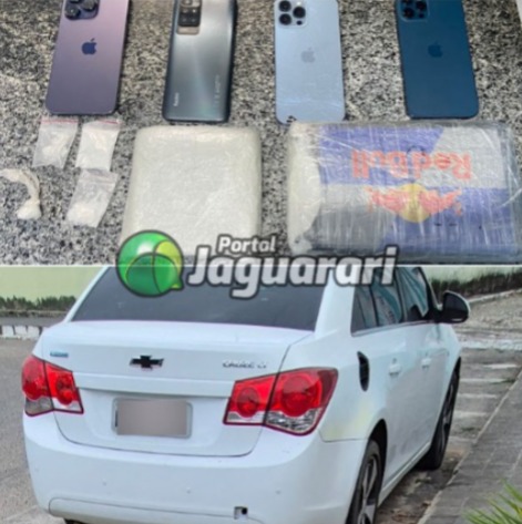 De acordo com informações, durante patrulhamento na região os militares abordaram um veículo Chevrolet Cruze, branco, placa de Petrolina (PE), trafegando sentido a Senhor do Bonfim (BA), com três ocupantes. No decorrer das buscas no interior do carro e nos passageiros, os policiais localizaram um tablete de aproximadamente 1,56 kg com a marca “Red Bull”, outro tablete de cerca de 500g e quatro porções de um pó branco análogo a cocaína. Também foram apreendidos quatro celulares, sendo três iPhones e um Redmi.